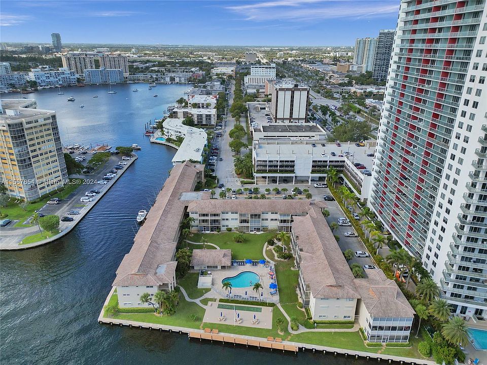 Clean, organized, move in ready! New appliances, fully furnished. Screened patio door opens to the garden and pool area. Impact entry door, complete storm shutters, watch the boats go by. Park right in front of your door. Gated community, dock, BBQ, shuffleboard. Laundry just a few steps away, extra storage. Quiet friendly community. Short stroll or free trolleys to grocery, beaches, shopping, dining, banks, nightlife. Close to golf courses, Hollywood Broadwalk and Downtown Hollywood just 2 miles away. Fort Lauderdale, Miami and Hard Rock Casino, Gulfstream Park close by. 40 year inspection complete. Maintenance $398/month. OK to lease after 2 years 3-6 months, one time per year. No dockage currently available. Waiting list. Pet restrictions.