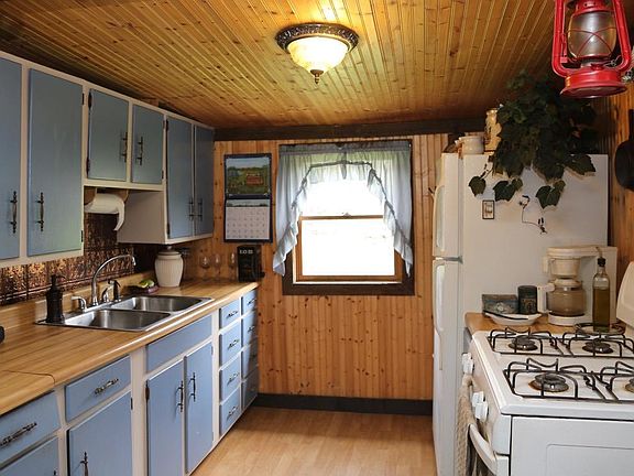 Cozy bungalow nestled on 2 acres less than 2 miles from Lake Eden. Natural wood work, open floor plan and all one level living. Sunroom with door to back deck. On demand propane hot water heater and kerosene monitor heater or wood stove heat. Two Sheds and a large two story 22X32 pole barn with metal roof. Very affordable to heat, low taxes and no private road! Live here and plan to build in the future when building prices come down. Showings Start Saturday 4/30 at Noon.