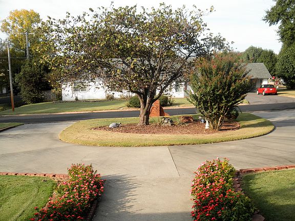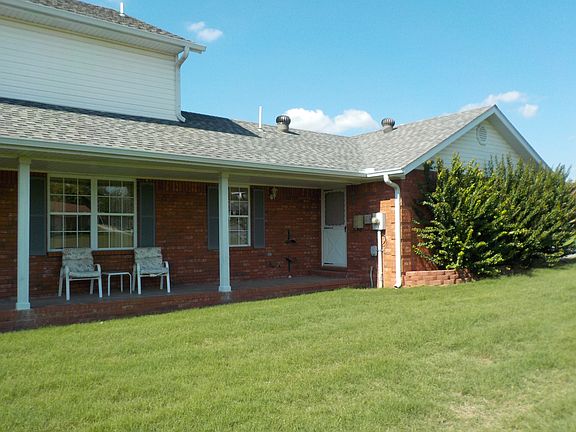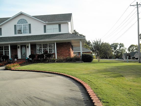 (918)208-9040 or (918)775-0453. Available for immediate occupancy. Beautiful curb appeal upon entering popular Leisure Hills Addition with pretty landscaping. Extra clean home sitting in middle of two lots. Custom built by owner, house has tiled wrap around porch on three sides making it great for entertaining, circle driveway, over sized attached 3 car garage plus detached brick shop or 4th garage. 3 to 4 bedrooms with walk-in closets and 3 1/2 baths. Large kitchen with pretty oak cabinets and both a food bar and work island. All appliances stay. Lots and lots of storage. (We also own 3rd lot in back. Will sell with house if interested.)