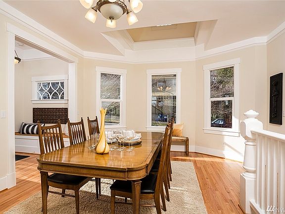 This 1901 Craftsman features a bright corner locale with picturesque mountain views. Main level living spaces soar with high ceilings, warm hardwoods and beautiful bay windows that welcome natural light. Interiors have been refreshed with new carpeting and fresh paint throughout. A wonderful open kitchen spills out onto an updated deckperfect for outdoor entertaining. 4 bedrooms, 2.75 baths charming den, dining and living room complete the main floor. A detached 1-car garage.