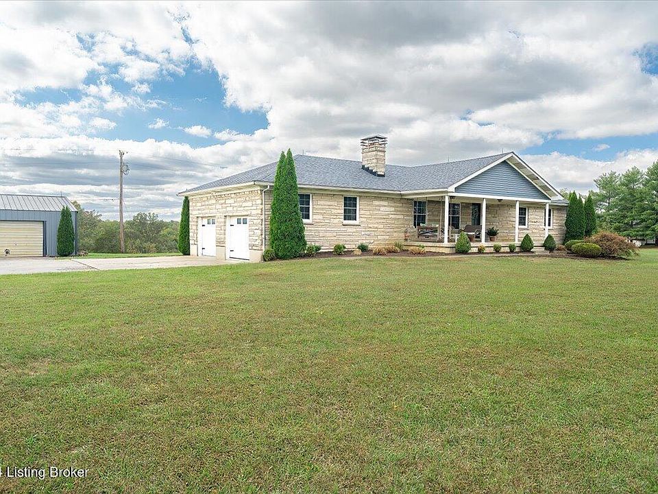 Serenity Awaits In Oldham County - The Beautifully Renovated Ranch on 12+ Acres you've been looking for! Discover the perfect blend of comfort and countryside living in this updated ranch nestled on some of the most tranquil, rolling land in the area. The extensive remodel was complete in 2017, and this inviting open layout features a spacious great room, dining area, and an updated kitchen, ideal for entertaining or cozy family gatherings. The full unfinished basement, with some framing already in place, offers generous space for expanding your living square footage. A large 2-car attached garage and a massive detached building offers versatile space, ideal for those with hobbies, or anyone seeking a dedicated workshop or storage area. >> Details Continued >> Step outside to your own private oasis, where you'll find a mix of cleared spaces, beautiful hardwoods, cedar groves, and a picturesque dry creek bed along the back of the property. Enjoy nature trails created through your own piece of paradise! Relax on the charming covered front porch or enjoy the custom paver patio and fire pit out back, perfect for stargazing and evenings spent with family and friends. This unique property offers an exceptional combination of peaceful country living and thoughtful modern touches, all within easy reach of nearby amenities.