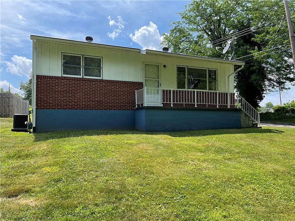 Adorable 2 bedroom ranch on a large level lot in the Central Valley School District. You will enjoy the large eat-in kitchen equipped with a refrigerator and gas stove. Off of the light filled living room is a porch overlooking the woods. The updated bathroom is a nice size. Both bedrooms have large closets. All the flooring has been recently updated with durable and tasteful luxury vinyl. Both the A/C and furnace are about 1 year old. The large, open, basement will suffice with all your other space needs. It is perfect for a gym, game room, storage or hobby room. It is already plumbed for a shower. The Pittsburgh Potty is already there! Washer and dryer are included. You will be very pleased you took the time to see this home!