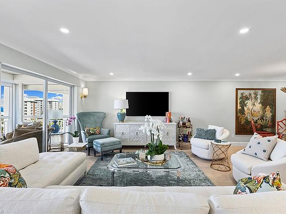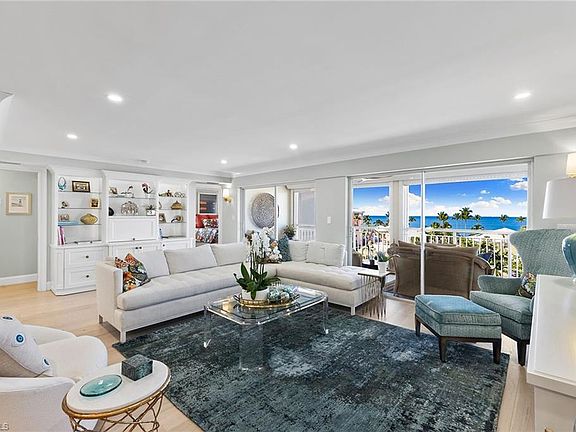 Enjoy year-round sunsets and picture postcard views of the Gulf of Mexico from this top floor residence in Spindrift Club. Beautifully renovated with French oak flooring, sparkling quartzite countertops, high-end cabinetry, all new baths with high-end fixtures and glass shower doors, this lovely pied-a-terre is on the prettiest part of Gulf Shore Boulevard. A corner unit, the primary suite offers gulf views while the guest suite offers lovely views of the bay. Away from the hustle and bustle, it’s a great place to hop on your bike and ride up to the restaurants at Venetian Village. Additionally, Spindrift Club offers dock leases with no bridges to Doctor's Pass!