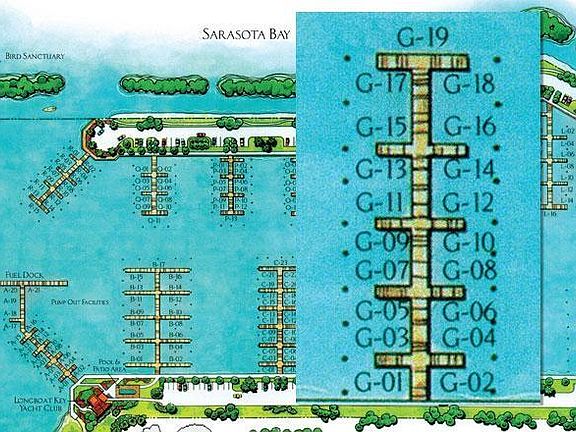 57 x 21 ft Boat Slip at Longboat Key Moorings Marina near the marina village amenities. Large turning radius, direct access to Sarasota Bay and the ICW, dockhands available to assist with docking at the slip. The deep water marina is as much a luxury resort as any other neighborhood on the island, thanks to individual slip ownership, Marina village that includes restaurant, shopping (close to Publix, CVS, and other specialty shops), recreational and social activities, on-site maintenance and concierge services. Cable television, electric, water and wireless internet access at each slip. Fuel dock. Free shuttle to St. Armand's Circle. The Marina has everything a boater could need. Membership at the Longboat Key Club is available for an additional fee. This parcel is subject the Town of Longboat Key Undergrounding Utility Assessment.
