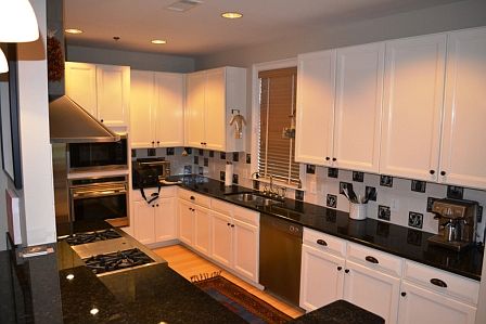 - Appliances: Dishwasher, Refrigerator, Disposal, Gas Cooktop, Convection Oven, Electric Oven, Microwave, Electric Water Heater, Self Cleaning Oven, Stainless Steel Appliance(s), Plumbed for Gas in Kit