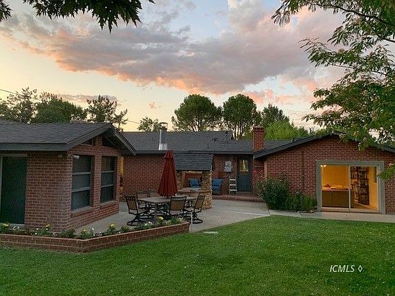Recently renovated 3 bedroom, 1 and 3/4 baths mid century home. New roof, new evaporative cooler. Newer forced air heat and newer 155 ft. well. Spacious .46 acre lot with large 2 car garage, work area with air compressor and compressed air feed lines to locations throughout garage. Lovely backyard with picturesque stream, mountain views, and garden area . Plenty of room for RV, boat parking and other toys. Two metal free standing storage sheds on property. Master bedroom with vaulted ceiling and fireplace.