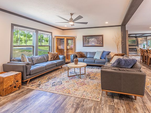 Beautiful newly built home situated on 3.5 acres. Fully furnished. Sleeps 5. Can rent short term, minimum 3 nights at $200 per night, $3500 for monthly, or long-term up to 6 months at a time at $2800 per month. Private country living but only 10 minutes to town. 3 bedrooms, 2 baths all on one-level. Open floorplan and split bedrooms. High quality furnishings and comfortable beds; sleeps 5 (2 King and 1Twin bed). 3 TVs. Newer 6 person hot tub. Kitchen for cooks with many gadgets! Firepit & Grill in backyard. Large creek for fishing. Hiking. Lawncare, TV & internet included. Alarm system optional. No smoking. No indoor pets. You can bring your horses and chickens as their is a barn and coup on the property. Stays less than 90 days pay sales tax at 10%. Stays 91 days or greater pay utilities (water, electricity, and internet).