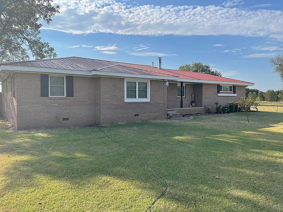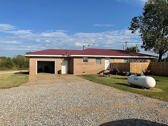 A little piece of Heaven! 55' x 200' barn ready to hold all of your needs! Dugout on one end to accommodate a large RV, one stall & plenty of room for livetock & equipment, large concrete pad ready for a shop, small decorative outbuilding, pasture is fenced w/5 strand barbwire. Water well is approx. 300' deep, Pecan tree. Home has been remodeled and is absolutely beautiful! Was a 3 bedroom, one wall was removed for a larger master bedroom, large walk-in closet and 3/4 bath. Nice size 2nd bedroom with desk area and nice closet space. Main bath has been remodeled with pedestal sink and tiled shower. Large living area with rustic beamed ceiling open to large fireplace opening w/wood burning stove. Large laundry area with wood and tin accented walls & plenty of room for a freezer. The show stopper is the kitchen!! Crown molding, beautiful ceiling tin fixture, large island with lots of storage, granite counters, remodeled cabinets, custom lighting, nice pantry w/120 yr old barn door!
