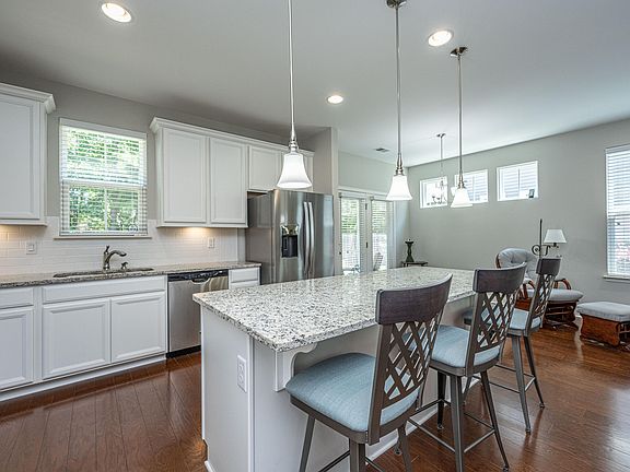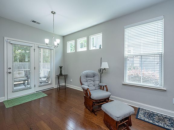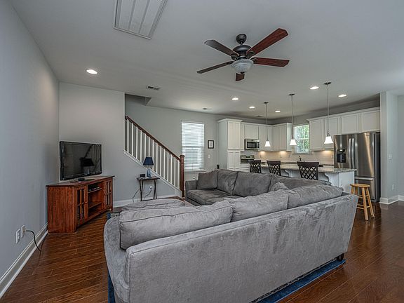 Experience the epitome of maintenance-free living in the heart of Summerville! This charming southern home offers 3 bedrooms and 2.5 bathrooms, exuding comfort and style with its double porches and one-car garage. Built by Sabal Homes, this tranquil end unit is thoughtfully designed, featuring an attached storage room without any adjoining living walls. Step inside to find all downstairs living areas adorned with beautiful wood flooring. The kitchen is a chef's dream, equipped with a new Whirlpool refrigerator, and moderately new elegant stainless steel finish stove, dishwasher and microwave appliances, pendant lighting above a spacious island, and crisp white subway tile backsplash. Enjoy the upgraded under-mount cabinet lighting, sleek granite countertops, and a cozy eat-in/dining room.Natural light fills the home, creating a warm and inviting atmosphere. Venture out to the screened back porch, which offers a private and peaceful retreat, bordered by a privacy fence. Convenience abounds with a laundry room, powder room, and ample storage throughout the home. Head upstairs to discover all three bedrooms, including the owner's suite that boasts a trey ceiling, walk-in shower, double vanities, and a separate toilet area. The two secondary bedrooms are equally spacious, with large closets, and one even offers a private porch overlooking the front of the house. Nestled in a beautiful community with tree-lined streets, this neighborhood provides access to 2 inviting pools and ample green space. The monthly HOA covers essential services such as the Termite Bond, Water & Sewer, Weekly lawn maintenance, exterior insurance, and regular pressure washing. Rest easy knowing that your new home is move-in ready and conveniently located just minutes from downtown Summerville and l-26.