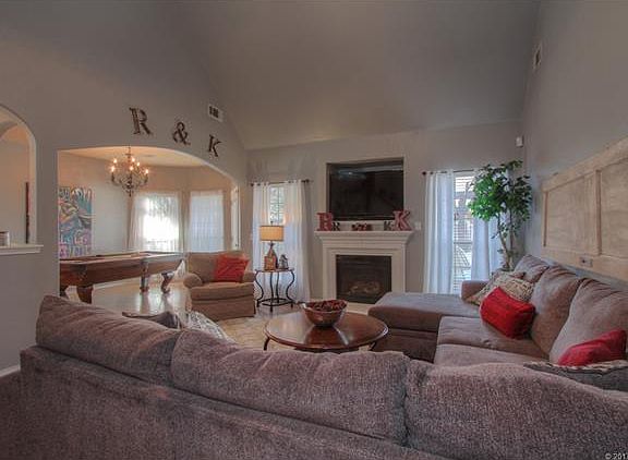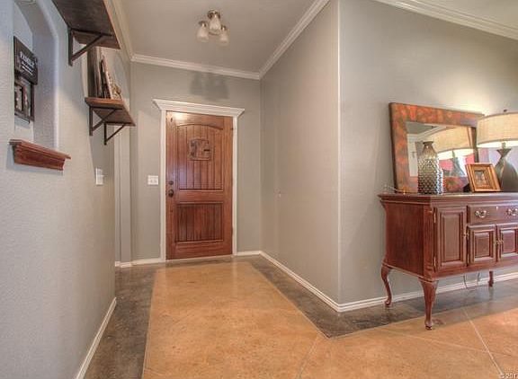 Beautiful home in great neighborhood! 4 beds + home theater, 3 car garage on corner lot. Desirable floorplan, master & 1 bed down. Soaring ceilings, unique stained concrete flrs, arches, crown mldg, fresh pnt & new lgt/fans. Pergola patio. A MUST SEE!