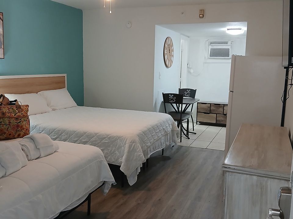 Studio Apartment, located on Ocean Blvd in Myrtle Beach. Completely furnished with 2 Queen sized beds, dresser, small dining table with 2 chairs and TV. Kitchen equipped with refrigerator, stove, microwave and sink. Property has outdoor pool. Available for Annual Lease. No smoking, no pets. All utilities included.