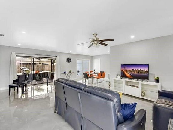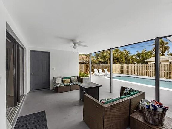 Experience your own slice of Florida paradise with this beautifully remodeled 3-bedroom, 2-bathroom pool home in the coveted Pompano Beach Estates, just a short walk from the beach. With no rental restrictions and certified as a vacation rental, this property is a perfect addition to an Airbnb portfolio. The home boasts an open layout that floods the space with natural light and elegance, featuring sliding doors that lead to a spacious porch and a picturesque pool view. Additional highlights include a circle driveway, a one-car garage, a modern kitchen with granite countertops and stainless steel appliances, and a new A/C system.