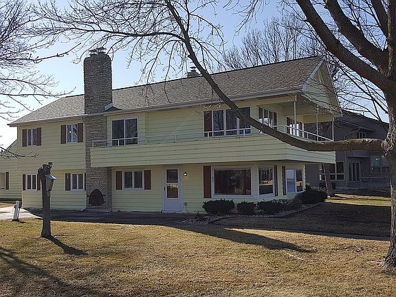 Beautiful lake Butte des Morts property with spectacular lake views. 4 Bedroom, 2 Bath, 2 Story home on 4.44 acres with a boathouse and exterior storage shed. 270 feet of frontage per seller, and a permanent pier. Large kitchen with breakfast bar open to dining area and family room with large windows for lakeside viewing. Access to the main floor full bath with shower just off the kitchen with access to the laundry room from the bath. The Living room is off of the kitchen at the back of the house and also has access to the laundry area. A vestibule separates the living room and garage. Four bedrooms upstairs with plenty of closet space. There is a large sitting area with gas log fireplace in the upper level for relaxation and quiet time. Upper level full bath with tub shower. A balcony wraps around the lake side of the home on the upper level. Spacious yard area with mature trees. Exterior fireplace and patio and a large boat house. Swim, fish, boat, hunt, or just relax in your own private paradise. Home is on slab and construction type cannot be verified visually. Schedule your appointment today!