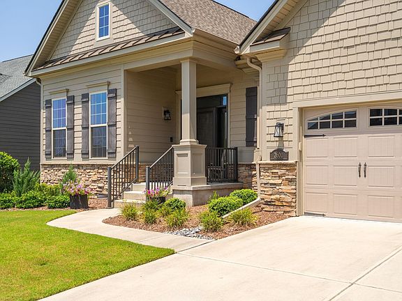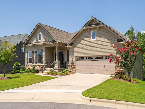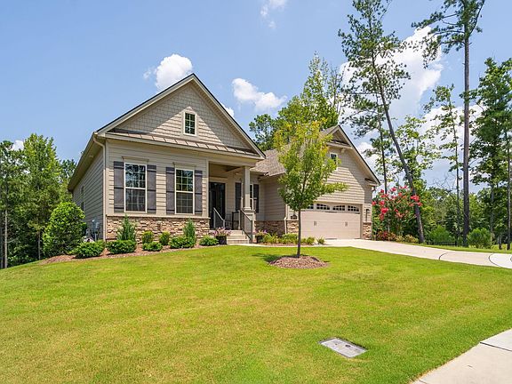 This luxury ranch-style home with stunning wooded views is located in the popular Regency at White Oak Creek community. Light and bright with 10 ft ceilings this open floor plan offers 3 bedrooms 2 bathrooms, all on 1 level with lots of space for entertaining in the dining room or breakfast area. The gourmet kitchen is a highlight with upgraded white shaker cabinets, gas cooktop, wall oven, brick backsplash and granite counter tops, plus a large island with extra storage. The family room is centered with a stone fireplace that adds warmth and sophistication. Large primary bedroom with walk in shower and double closets. So many added features including hickory hardwoods throughout. Refrigerator/Washer/Dryer included. Relax on the screened porch, overlooking a natural wooded area, so peaceful! With a conditioned walk in tall crawl space and added floor, you have so much storage. Enjoy the community clubhouse, pool, fitness, tennis/pickleball courts and walking trails. Yard maintenance included. Close to I-540, American tobacco trail, shopping and restaurants.