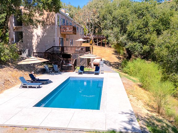 NOTE: PROPERTY IS NOT A YEARLY RENTAL. PROPERTY MAY ONLY BE RENTED OUT FURNISHED & ON A MONTH-TO-MONTH BASIS. Periods shorter than 31 days are allowed. PROPERTY HIGHLIGHTS - Swimming Pool: Enjoy relaxing on the chaise lounges at the private pool. - Hot Tub: Marvel at the night sky while relaxing in the sunken hot tub. - Bocce Court: Challenge your friends/family to a competitive game of Bocce. - BBQ: Dine al fresco while eating a delicious BBQ lunch. - Space: Relish the solitude of this vast 3,130 ft2 home. The space OVERVIEW Escape to the serene beauty of the Mayacamas Mountains in this stunning contemporary mountain home that offers 3 large bedrooms, each with an en-suite bathroom, along with a luxurious downstairs guest area boasting a private deck and spa. Spanning 3,130 sqft, this vast modern retreat offers the perfect blend of comfort and style. Explore the renowned wine regions of both Sonoma and Napa Valleys, just a short drive away. This idyllic getaway promises an unforgettable experience amidst nature's splendor. TWO LIVING AREAS Relax in either of the inviting living areas, both furnished with stylish seating and adorned with modern decor. Unwind after a day of exploration and let the designer touches envelop you. Stylish Seating: Sink into plush seats and indulge in absolute comfort. Modern Decor: Enjoy the curated ambiance created by the contemporary furnishings. Gas Fireplaces: Cozy up close to one of the gas fireplaces in either the upstairs or downstairs living rooms while watching TV or playing a game. KITCHEN & DINING ROOM The gorgeous open kitchen is a culinary haven, perfect for creating memorable meals. Gather around the dining table and experience the pleasure of dining in style. Designer Kitchen: Discover a well-appointed kitchen with an island that combines elegance with functionality. Kitchen Amenities: Coffee maker (drip coffee maker), basic cooking essentials (seasonings, condiments, oil, vinegar, organic sugar, coffee, tea, etc.), microwave, full-sized fridge, range, oven, dishwasher, and blender. Dining Area: Share delicious meals and create lasting memories around the chic dining table with seating for 8. BEDROOMS Retreat to the cozy bedrooms, where comfort and luxury await. Experience a restful slumber amidst the softness of Egyptian cotton sheets. Luxurious Beds: Drift into dreamland on our premium beds, adorned with Egyptian cotton sheets. Serene Ambiance: Find solace and tranquility in the tastefully designed bedrooms. Primary Bedroom (Main Level): King-size bed with en-suite bathroom (bathtub & shower) with shared access to the office. Bedroom 2: (Main Level): Two single beds (each can sleep 1 adult) with an en-suite bathroom (shower) that doubles as a hallway guest bathroom. Bedroom 3: (Lower Level): King-size bed, ensuite bathroom (tub and shower combo), and direct deck access to hot tub. Office: This room has a comfortable sleeper sofa accommodating 2 adults. BATHROOMS The home features 3 en-suite bathrooms, each designed with attention to detail and equipped with essential amenities for your convenience. Modern Bathrooms: Refresh and rejuvenate in the elegantly appointed bathrooms. Essential Amenities: Enjoy the provided toiletries for a hassle-free stay. INDOOR AMENITIES Smart TVs: Enjoy your favorite shows and movies on the smart TVs available on each level. Separate Office Space: Stay productive in a designated workspace. Air conditioning/Heating: A central heating and cooling system is installed throughout the house. Ceiling fans: In all bedrooms and the upstairs living room/dining area, keep cool with a nice breeze from the fans. Iron/Ironing board: Just in case you need to iron your clothes to go to a nice local restaurant. OUTDOOR AMENITIES BBQ grill (gas): For grilling up those burgers, hot dogs, chicken, and vegetables for a fun al fresco lunch on the patio or by the pool. Deck/Patio: Lots of comfortable outdoor seating as well as an outdoor dining area for everyone to enjoy. Bocce Court: This is a new addition to the home - have a fun game for everyone to play. Hot tub: This sunken hot tub is easy to get in and out of and can be used all year round. Pool: This unheated pool is wonderful for a cool swim during the hotter months of the year. Sun loungers: Relax by the pool or on one of the patios/decks with a good book and a glass of wine. STAFF & SERVICES One of the advantages of staying at a Standout Stays property is that we offer a full range of concierge services including: Home pre-stocking Private Chef services In-home Massage Yoga Celebration Package Wine tasting transport & booking Guest access Guests will get an access code to use while staying at the property. Other things to note DOG POLICY: We allow 1 house-trained dog no larger than 55lbs. We charge a pet cleaning fee of $100 PER dog and require a pet contract to be signed before your stay. After you book we will send you a confirmation message. Just click on the Experiences link to purchase the dog stay (this must be done before your stay). NOISE: This is a quiet neighborhood. The county prohibits amplified outside noise. Please keep the music/conversation down during the daytime and evening. QUIET HOURS: Please head back in the house between 9 PM and 7 AM. All music, TV, and conversations should be kept to a regular conversation level. Quiet Hours are mandated by Sonoma County and breaking this rule is grounds for ending your stay early with no refund. SMOKING: Absolutely NO SMOKING allowed in this home. This will result in a fine of $200 or more. POWER BACKUP: A solar-powered backup battery is available and will automatically start if the power goes out during your stay. CELL RECEPTION: The home is located in an area with marginal cell reception. A landline is available for guest use if needed. PARKING: There is free parking available for 2 vehicles. OUTDOOR FIRES: No outdoor wood-burning fires are allowed based on county regulations. License #: LIC24-0280 NOTE: PROPERTY ON