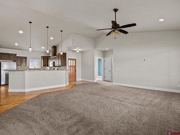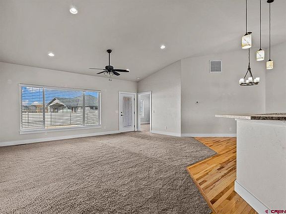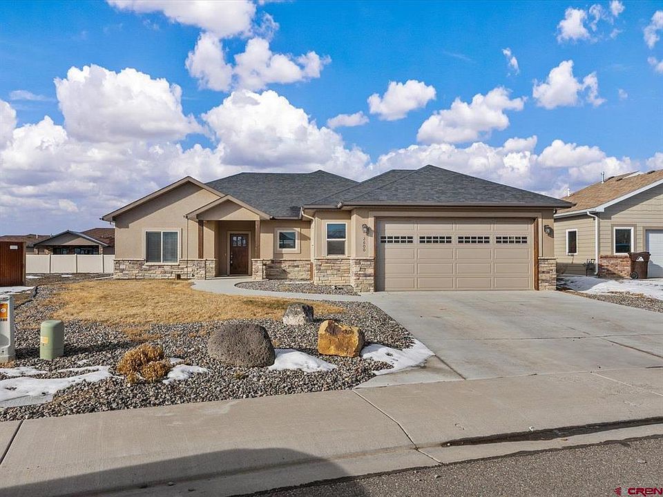 Perfection Personified in this Newer Construction Oasis with Quality Finishes and Incredible Rocky Mountain Views! Extensive in features and flawless in design, this home delivers everything you've been looking for. A sharp, Colorado-inspired curb appeal is tangible with tasteful stone and stucco tones with rustic wood accents. Breathe easy as you step inside to a welcoming, open floor plan with classic hardwood floors and a vaulted ceiling. The home features a split floor plan with a generous living room, and the sprawling kitchen provides a huge amount of counter space. The kitchen also features an eat-in bar, an island, stainless steel appliances, and gorgeous granite countertops. Never lack for storage with a large pantry, which compliments the indulgent cabinet package; dark stained wood cabinets with pullouts and soft close doors. Conveniently located right off the kitchen and between the garage, is a tiled, oversized laundry/utility room with a large sink, more cabinets, and 2 additional closets. Natural light streams through the large primary bedroom, providing excellent space for a reading nook or yoga mat. Let the worries of the world float away in the refuge of the en-suite bathroom, which has a beautifully tiled soaking tub and walk-in shower, a large walk-in closet, an additional linen closet, and 2 separate vanities. The oversized garage features plenty of extra storage space and room for tinkering. Walk to the back patio and you have a protected and private experience of the diamond of Western Colorado - the iconic and majestic San Juan Mountains. Watch the sun paint the sky as you overlook the mountains, lush fairways, and high-end homes of the Bridges Golf Course from the covered back patio with your favorite beverage in hand. The best feature of the home may be the location - simply minutes drive from the heart of south Montrose with the recreation center, excellent restaurants, coffee shops, and shopping. Live a simple and active lifestyle with parks and walking paths in every direction. Don't Settle For Mediocrity; Embrace the Idyllic Home in an Ideal Setting; Take a Tour Today!