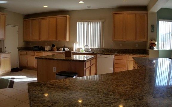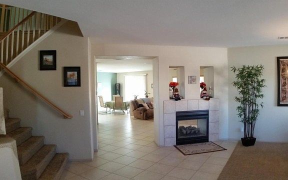 This Beautiful Home has all the features, Huge entertaining space, open concept throughout home, Formal Living room with two sided Fireplace connects from the entry room to family room, dining area and the Large kitchen with Nice granite counter, breakfast bar & kitchen Island with cabinet space to spare! Great downstairs Office space with a 1/2 bath for your guests. Around the corner you will go up a flight of stairs to the lofty master suite. Everything will easily fit in the huge 'L' Shaped closet, & your upstairs laundry room! Four more bedrooms, even a shared Jack and Jill bath connects two of the bedrooms. Outside is xera-scaped with a nice patio and artificial grass(Green all year round!) and Possible RV access for all your toys! This is a beauty you Only see once, Don't miss out