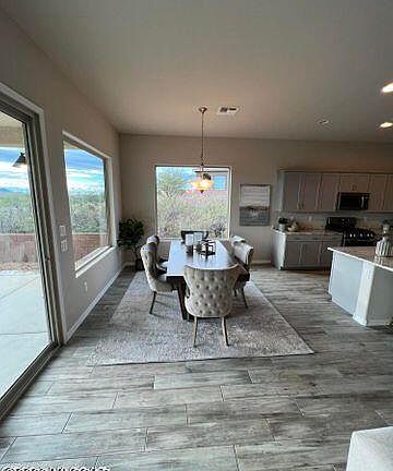 This modern Rosewood Model has knockout views of Canoa Ranch Golf Course from the back and the Santa Rita Mountains from the front.. It sits high on a premium lot, close to an acre of land in the desirable Canoa Ranch Community. The large lot provides privacy, peace, and quiet. This home is currently under construction. Some of the features include a 3 car garage with a 4 ft extension. Gourmet kitchen includes gas stainless steel appliances. Walk-in showers in both bathrooms, laundry room with sink and storage cabinets. 8' doors, upgraded baseboards, gas to rear patio, and gorgeous interior design finishings.