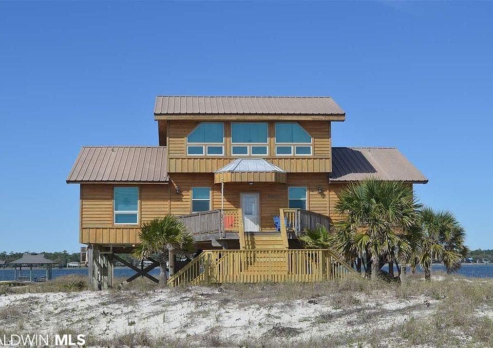 COME where the SUMMER never ends and the living is EASY with your own sandy lagoon beach! Tropical OASIS in this RUSTIC CHIC beach house with unending CHARM. Nestled on HALF ACRE of STUNNING LAGOON FRONTAGE with VIEWS to take your breath away, and DIRECT VIEWS of the GULF with DIRECT FOOT ACCESS over the DUNES. Come and lose yourself at 'LOST SHAKER OF SALT' beach house with CYPRESS SIDING and GORGEOUS CYPRESS floors and walls. Enjoy YEAR ROUND SUNSETS with your private walkover from the house to the COVERED DOCK where you can picnic, lounge under the shade, throw in your fishing pole, and park your boat! Step inside the 4 bedroom beauty with SOARING CEILINGS and GIANT LIVING area to gather. LARGE KITCHEN with SOLID WOOD CABINETS and STAINLESS APPLIANCES. Feed the CREW with a breakfast nook and full elegant dining area. MAIN LEVEL BOAST three bedrooms all with water views. The MASTER bedroom is a SHOWCASE with AMAZING VIEWS and privacy with en suite bath. UPGRADES GALORE include updated MASSIVE FRONT and BACK DECKS, BONUS STORAGE under home and outdoor shower. This home has been immaculately cared for. If you LOVE the water, this is your heaven! You can FISH, KAYAK, CRAB, SWIM, FLOAT, PADDLEBOARD, BOAT or just chill and watch the views. Close to town, yet feel away from it all.