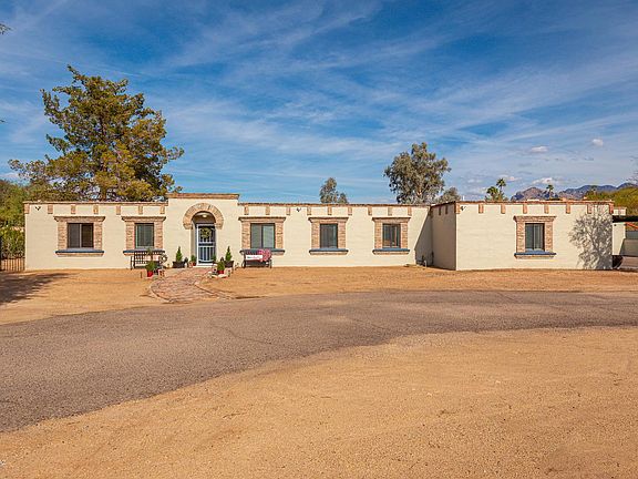 Beautiful OMNI Tucson National Country Club! This beautifully UPDATED Territorial home is ideal for anyone seeking unique charm & character! Split Bd plan w/5 BD, 4 BA. Guest Suite equipped w/kitchenette and new cabinetry, & separate entrance. Perfect for teenagers, in-laws or college students. Interior/Exterior freshly painted! New flooring throughout, all interior doors new and updated, and marble tops in kitchen and bath. Oversized backyard w/multiple levels, NEW turf, & sparkling swimming pool are perfect for entertaining & enjoying beautiful sunsets & mountain views!Mature landscaping surrounds this almost 1 acre lot. 4-6 car tandem garage w/doors on two ends, and huge workshop are perfect for a car collector or just room for all the toys! Private Electric Entrance Gate for priv