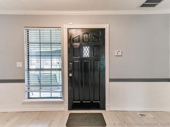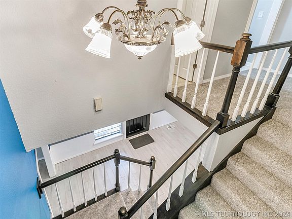 Welcome to your move in ready oasis! This home has the best of both worlds with the perfect separation of family and personal space upstairs complimented by entertaining space galore downstairs. Over sized bedrooms are all upstairs with the indoor laundry room. Updated fireplace in the family room and new flooring throughout. Enjoy the large and tranquil backyard with covered patio and above ground pool with deck and trimmed mature trees. Extra cement pad for parking your RV or other favorite recreational vehicles behind the privacy fence. Quick access to highway 169 and the Creek Turnpike. Seller providing 1 year home warranty.