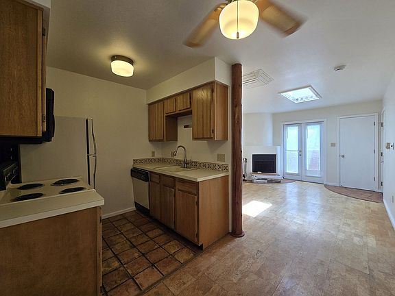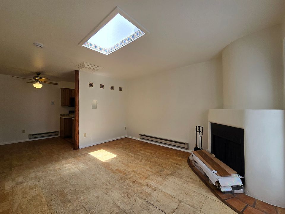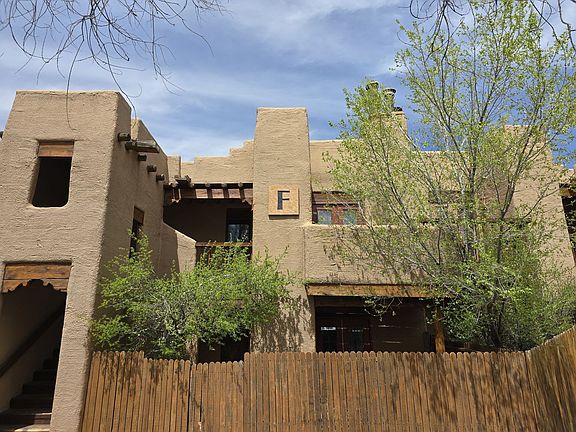 Located in the Tierra de Zia gated community in South Santa Fe, this charming 466 sq ft second-floor condo offers one bedroom and one bathroom. The complex spans 13.5 acres of serene landscaping, complete with arroyos, fish ponds, wooden bridges, and a swimming pool area. The unit features a wood-burning fireplace and skylight in the cozy living room, which is finished with cork flooring. The kitchen includes Saltillo tile flooring, an electric stove/range, refrigerator, and dishwasher, while the bedroom has an en-suite bathroom with a brand new shower. Enjoy the private balcony and take advantage of the nearby on-site laundry facility and off-street parking. Climate control is provided with evaporative cooling and electric baseboard heating. Small pet considered. Brant Goodman, Qualifying Broker