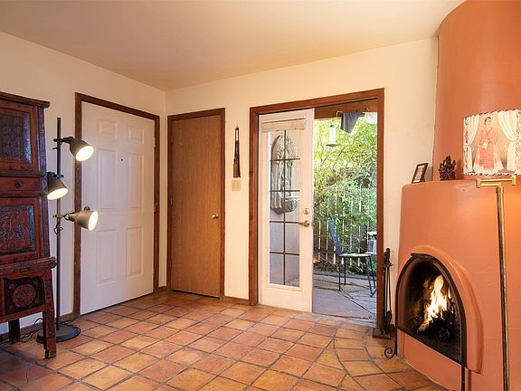 This Sweet Ground floor condo has plenty of Southwestern Charm, Saltillo like tile, and a kiva Fireplace. 1 bedroom, one bath, Stainless steel refrigerator and stove. The lovely grounds offer walking paths and Foliage throughout the Compound, a swimming pool Sauna, and Laundry Room round out the amenities. The fountain for the Compound is visible right outside this corner unit. The Big Fountain in the Courtyard does not convey!