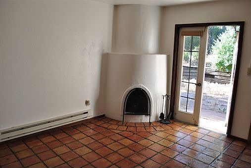 Gated Tierra de Zia, Single Level duplex Condo with super large outdoor space - which borders Natural Vegetation. Inside is amazing, I like the bathroom, which has marble tile and jetted Tub. Santa Fean touches to property with full saltillo Tile Floors and wooden beams. There is no Carpet. This unit is exceptionally light and Bright with multiple added skylights. This is a short sale/distressed property - needs some work. The Property is being sold as is - where is.