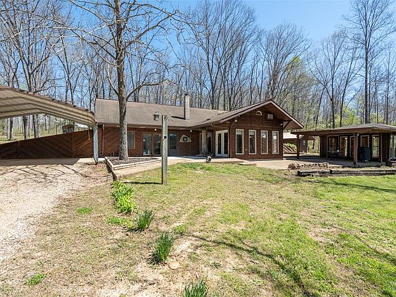 Escape to your own secluded, wooded, 33 acres m/l paradise. Charming, cedar sided, earth contact house located just outside the city limits. Home offers an open floor plan with living room and kitchen with wood stove for cozy warmth in the colder months. Large primary bedroom with patio doors and primary bath and cedar lined closet. Second bedroom offers the second full bath and access to storage and laundry room. Large pantry off the kitchen with adjoining, box car sided room with vaulted ceilings perfect as a dining or family room with abundant natural light. Lots of concrete patio space, some covered. Enclosed, detached office area or rec room. Extra space for added guests or storage. Large 30x50 barn with some concrete floors and electric, stalls, tack room and storage. Lean-to on both sides, chicken coop, 2-car carport and lots of room for expansion on this beautiful acreage. Call for your personal showing today.