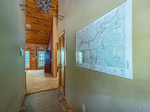Welcome to your secluded paradise! A 4.58-acre plot, this charming log cabin offers the perfect blend of rustic charm & peaceful seclusion. Located in a serene & private setting, this delightful two-bedroom retreat is a haven for nature lovers & those seeking a tranquil escape from the hustle & bustle of life. Towering trees & lush greenery create a natural barrier, ensuring complete privacy. The expansive acreage provides ample space for outdoor activities, whether you're looking to explore, unwind, or create your own mini-oasis. Step inside the log cabin, & you'll instantly be greeted by the warm & inviting ambiance. The cozy living area boasts a beautiful fireplace, perfect for chilly evenings & creating a welcoming atmosphere for gatherings with family & friends. screened in porch offers breathtaking views, matching garage is great for storage, great garden area & plenty of room for animals. No government loans due to lagoon, size, trees. so on. Cash or Conventional loan purchase.