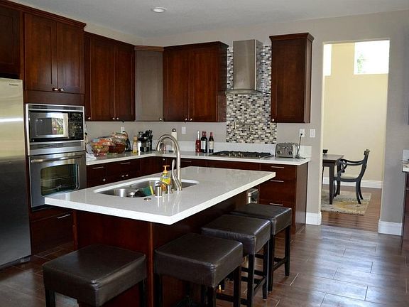 Welcome to your new beautifully REMODELED POOL HOME in the highly coveted Stevenson Ranch neighborhood. Featuring a light & bright open floor plan consisting of 5 BEDROOMS (1 downstairs), 3 bathrooms, formal living room, formal dining room, SUPER FAMILY ROOM/great room, indoor laundry room and 2 car garage. Inviting covered porch with welcoming double door entry into the formal living room with SOARING CEILINGS and a cozy fireplace. Gorgeous WOOD FLOORING and 6" baseboards throughout most of the first level with tile in the kitchen and bathroom. The super family/great room for versatile living features another COZY FIREPLACE with an attractive WHITE TILE ACCENT WALL and is open to the adjacent bright kitchen and spacious island with BREAKFAST BAR, perfect for entertaining. The kitchen is tastefully updated with TRENDY WHITE QUARTZ COUNTER TOPS, dark cabinets, stainless steel appliances, Whirlpool range hood, a convenient POT FILLER FAUCET above the stove top, silver metal finish tile backsplash and metallic finish ceramic tile flooring. The sliding glass door at the kitchen nook gives you access to the LUXURY OUTDOOR LIVING SPACE featuring a gorgeous PEBBLE SHEEN SALT WATER POOL and spa surrounded by beautiful CONTEMPORARY DECKING made with IPE wood deck tiles and a BUILT-IN FIREPIT. Back inside you will find a FULL BEDROOM with adjacent BATHROOM DOWNSTAIRS. Hang on to the MODERN BANISTER RAILING as it leads you to the second level where you will find a generous master bedroom with WOOD flooring, an EN-SUITE REMODELED BATH with separate jetted tub and shower and walk-in closet. Step out into the INVITING LARGE BALCONY off the master and enjoy your morning coffee or evening cocktail. There are 3 additional bedrooms upstairs and another tastefully remodeled bathroom. Some additional features include: CEILING FANS in 4 bedrooms and great room, SOLAR Panels, 240V TESLA CHARGER installed in garage, DUAL AC/HEATING SYSTEM (upstairs unit replaced 2017) AC registers replaced with multi-directional type, water heater replaced in 2018, home exterior painted in 2020. This fabulous property is located near RICHARD RIOUX COUNTY PARK which offers numerous amenities and things to do including multiple sports fields, basketball courts, tennis courts, picnic area and much more. Convenient nearby shopping strip mall, AWARD WINNING SCHOOLS, stunning mountainous topography, and GREAT FREEWAY ACCESS makes this an amazing place to live.