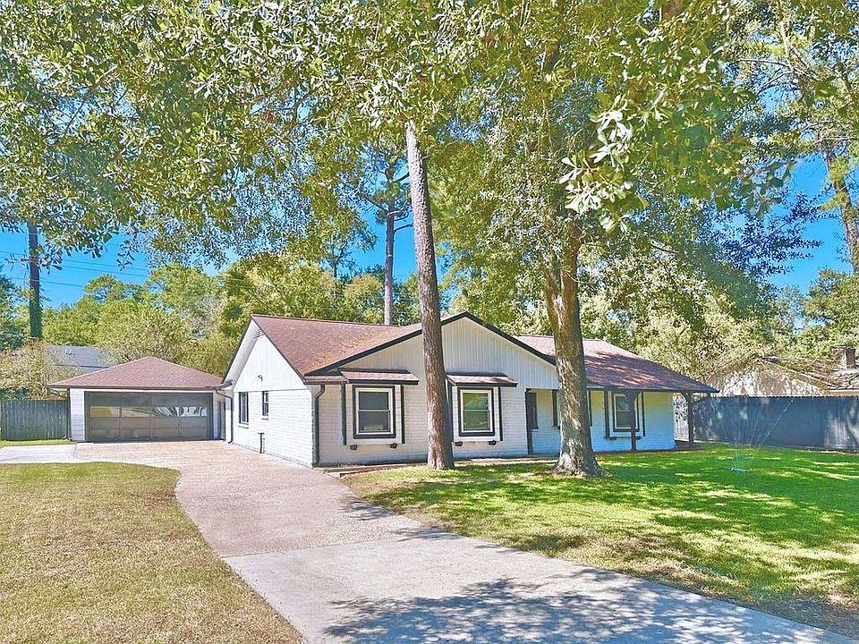 Excellent location, near The Woodlands Mall. Low Taxes & no HOA, on a large unrestricted lot with tripple-wide extended driveway & ez rear yard drive-thru access. Featuring a soaring ceiling living room with gas fireplace, wood floors, 6 panel doors, dual pane windows, new paint, electrical & plumbing fixtures, 3 bedrooms, 2 full baths (tub & showers), a recent roof & Hvac system, full perimeter rain gutters, and a private park-like backyard with fire-pit, patio deck, storage shed, and an air conditioned finished garage. The Chef's kitchen features granite countertops with glass backsplash, stainless steel appliances, a deep basin sink with disposal system, new cabinets, a pantry, and a utility/laundry room. Quiet neighborhood, Top rated schools, Not in flood zone. Move-in ready/ Schedule your showing today!