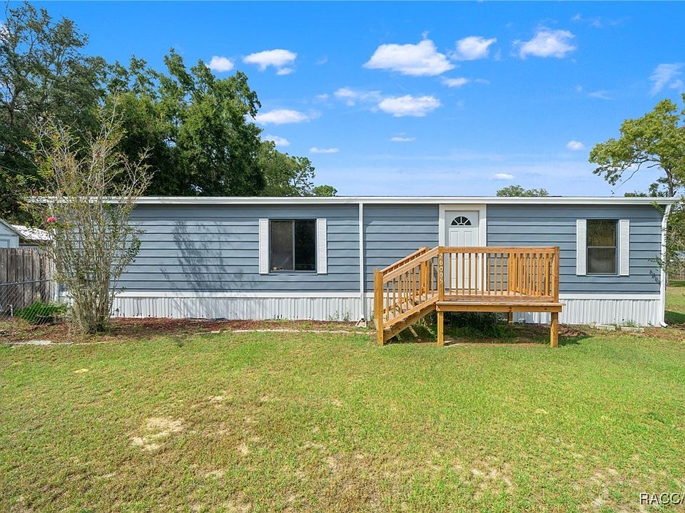 Welcome to this charming 2-bedroom, 2-bath home just minutes from historic Downtown Brooksville! Situated on a spacious fenced-in yard, this property offers plenty of room to enjoy outdoor living. Relax or entertain on the covered wood patio, complete with both stairs and a ramp for easy access to the back doors. An outdoor shed with an attached carport provides additional storage and parking convenience. Perfectly located only 10 minutes from the Brooksville Courthouse, local restaurants, boutiques, and more, this home combines comfort, functionality, and convenience in a great location!