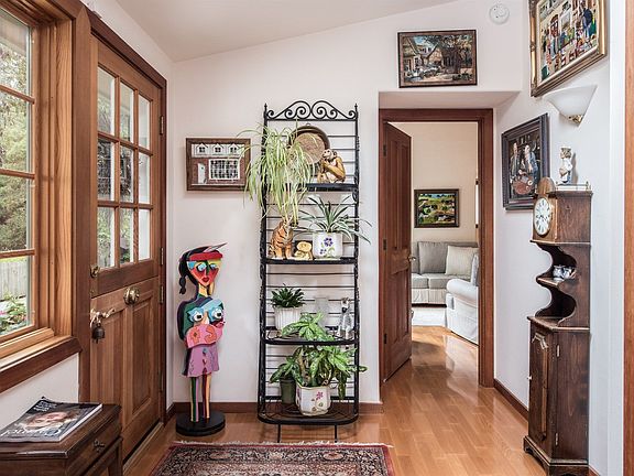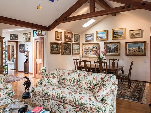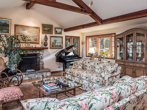Absolutely wonderful single level home set way back from street with total privacy and quiet. High ceilings with open beams, open floor plan, loads of windows and skylights for a bright and happy house. Master suite is extra large with a fireplace and sitting area that open out to a garden patio. Hardwood floors in many rooms; updated kitchen and bathrooms. An abundance of French doors open out to lovely gardens and oversized garage with a huge paver driveway and more than ample on-site parking - This is a true gem on an oversized lot.......and Mikey lives here!