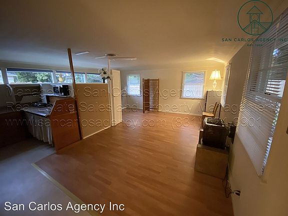 Guest Unit in Hatton Fields Neighborhood - (ZELL2 I/O) San Carlos Agency, Inc. offers this separate residential unit with a 1-BEDROOM alcove. While maintaining visual privacy, other bedroom wall has been lowered, allowing natural light to fill the entire space. The living area is 11'-3"x 19'-7". Lots of storage, 4'x6' closet, 8' feet or more of clothes hanging rod and bookcase. Kitchen includes two full height pantry or closet, upper appliance shelf, refrigerator, double burner electric hot plate, microwave and (optional) table/chairs. Attractive gas-log stove (auto-thermostat) is focal point of living area. Additional separate closet space available for convenience of your own stackable washer/dryer at $50 per month (landlord will provide hot water and gas line). Landlord pays for natural gas, water and trash. Tenant pays for electrical and cable/internet. Convenient adjacent parking. Private enclosed patio plus a possible garden/wildflower area. It's located in the convenient Hatton Fields neighborhood of Carmel. No smoking. Pet negotiable. Contact San Carlos Agency, Inc.CarmelRentalProperties.com. (RLNE5306039)