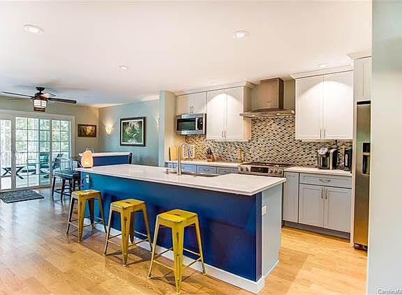 Come in and relax with gorgeous Lake Wylie views. You will feel like you are vacationing in this beautifully renovated end unit condo. All renovations are completed so you can move right in. Fully updated kitchen features new cabinets (soft close), new appliances, stunning backsplash and quartz countertops. New hardwood floors. Even the bathrooms are updated with a glass shower and jacuzzi tub. Sellers have attended to every detail including new plumbing, new water heater, new doors and electric panel. The screened-in porch and patio with gorgeous lake view will likely be your favorite place to spend your mornings and evenings! Property includes a shared dock with electric. Freshly painted exterior