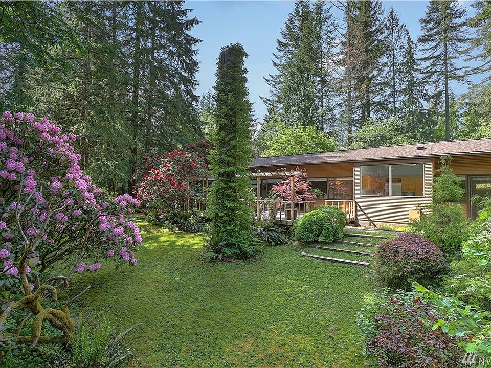 Appealing design made this mid-century modern 3 bdrm home a Seattle Times AIA "Home of the Month" when it was built in 1963! Vaulted cedar-lined ceilings w/angles, accent wood walls, screened panels, original hardwoods & walls of windows are some of its architectural features.Totally remodeled master bath & full guest bath add to move-in charm. Premium flat corner lot has mature landscaping & lawn areas. 1-car garage w/2nd converted to 150 sqft rm; could be more + 2 car carport. Issaquah Schools