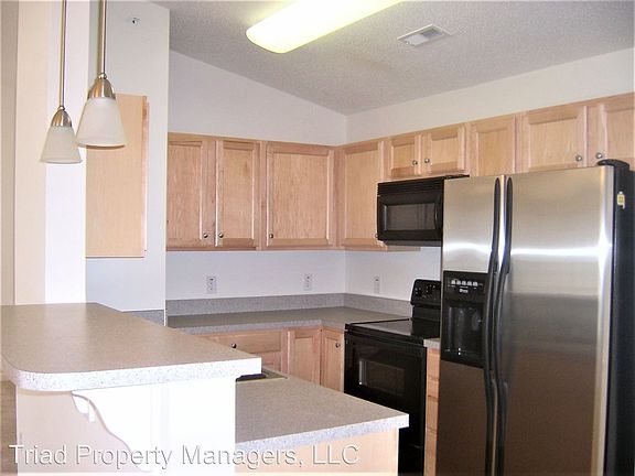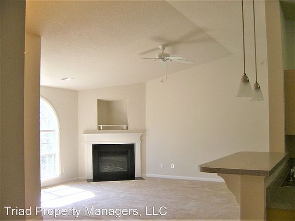 Newer Condo off of Hilltop Road, Fire Place, Vaulted Ceilings, Balcony! - Beautiful Condo off of Hilltop Road located in Highgate Community. Two Bedrooms and Two Full Bathrooms. Kitchen has Stove, Refrigerator, Dish-Washer and Built-In Microwave. Fire Place with Gas logs in Living Room. Cathedral Ceilings and Blinds on Windows. Energy Efficient, low utility bills. Approximately 1150 square foot. Balcony that overlooks quiet wooded area. One Story Condo located on the third floor. Security System with Video in unit to unlock Main Door into Building. Water is Included. Great Location off of Hilltop Road between Stanley Road and High Point Rd. Address: 2600 K Pennoak Way, Greensboro NC 27407 The rent is $825 and the deposit is $825 and there is a $40 application fee per adult. For more information or to set up an appointment to view the property please call Triad Property Managers at 336-365-8020. (RLNE3533626)