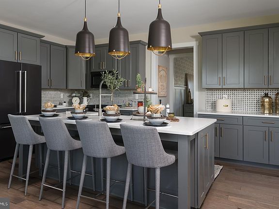 Key Features: Open concept main living area including the Kitchen, Breakfast Area, and Family Room // Kitchen showcases a large eat-in island with quartz countertops, tile backsplash, extended cabinets, gas range, and KitchenAid stainless steel appliances // Family Room boasts a gas fireplace // Formal Dining Room and Private Study on the 1st floor // Owner's Suite features 2 walk-in closets and ensuite bath with a dual vanity, soaker tub, tiled shower, and separate water closet // 3 additional bedrooms and a shared full bath on the 2nd floor // Laundry Room on the same floor as the bedrooms // Partially finished basement with 1/2 bath. The Parker Farmhouse! This location prominent home is 2,850 square feet with four bedrooms, two full bathrooms and two half bathrooms. As you enter, you'll notice the bright and open atmosphere that flows throughout the house. On the left is the Study, while the Dining Room on the right both rooms with beautiful trim details. Moving forward, you'll find the Family Room, Breakfast Area, and Classic Kitchen. The Family Room is filled with natural light and boasts a white brick accent wall. The Classic Kitchen stands out with its New Haven Boulder Cabinets and a white Farmhouse Sink, complemented by a walk-in Pantry. The Breakfast Area offers lovely views of the golf course and provides access to the deck which puts you on the green. Completing the main level is a Mudroom with a bench and a Powder Room. Taking the stairs in Foyer up to the second level will bring you to the Owner's Suite along with three additional bedrooms. Each additional bedroom has a walk in closet. There's also a Laundry Room and the family bath with a double bowl vanity. The Owner's Suite comes with a large walk-in closet and Serenity Bath. The Serenity bath is highlighted by a farmhouse door and features a free standing tub. The Owner's Suite is finished with high ceilings and great trim detail. Heading downstairs to the near basement you will find a space that is ideal for entertainment offering multiple living spaces, a Powder Room and a Walk-Out Patio to see more ideal views of the golf course. The Views at Bridgewater is a vibrant community of new construction homes located in York, PA. This area is perfect for everyone due to its "Live, Eat, & Play" lifestyle, offering plenty of opportunities for entertainment, dining, and recreation. The community is surrounded by nearly 62 acres of open space, the Bridgewater Golf Club, and the Bridgewater Public House, providing breathtaking views for homeowners. Price shown includes all applicable incentives when using a Keystone Custom Homes preferred lender. Price subject to change without notice. Price includes current incentive available through 12/16.