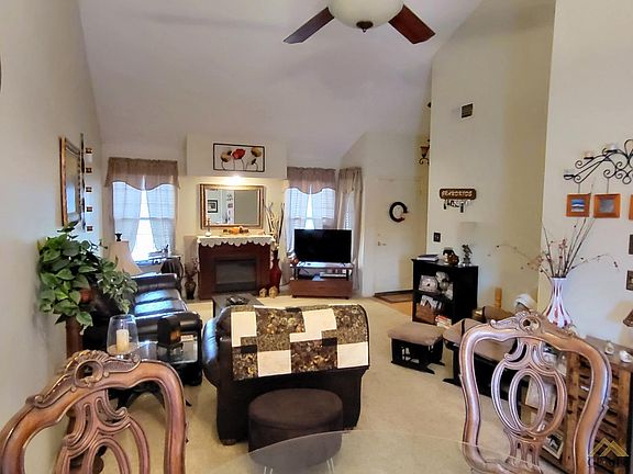 Adorable & Affordable! Check out this single story condo conveniently located to shopping and more! Offering a spacious living room with fireplace and vaulted ceilings. Dining area with French doors. Nicely sized kitchen with lots of cabinetry, eating bar area and convenient door from garage, perfect for bringing in groceries. Spacious owner's suite with walk in closet. Large secondary bedroom. All bedrooms have ceiling fans. This home has so much to offer, see it today!