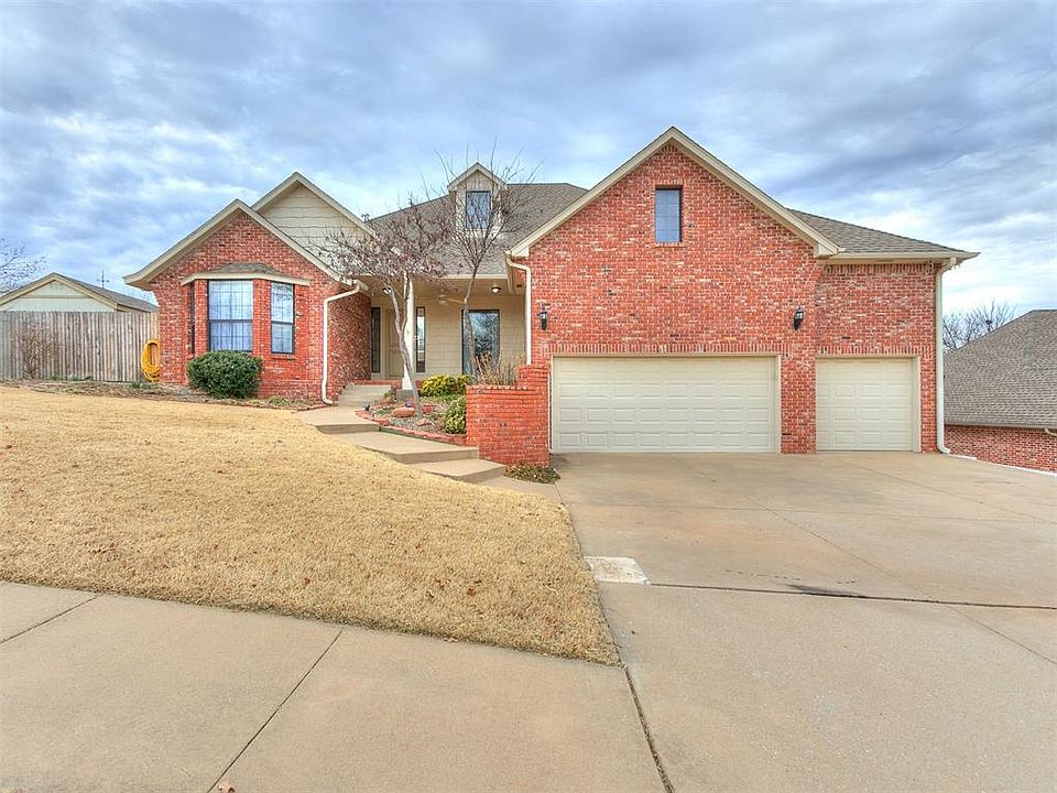 A stunning, beautiful 5 bedroom home in the highly sought after Asheforde Oaks addition just became available for your to make your new home!! Walk in and be stunned with the elegant details of this home. You will have the natural wood flooring complimenting all the detailed wood work around the high arch ways. You will enjoy all the space this home has to offer, including four bedrooms, three full bathrooms, huge living area, two dining areas, and this amazing kitchen upstairs. The kitchen is loaded with beautiful detailed cabinetry, granite counter tops, built in oven and microwave, a beautiful hutch and so much more. The living area is centered and open for all your entertaining needs. The master retreat is large for all your furniture and more, the bathroom offers a double vanity, huge jetted tub, tiled shower, walk in closet and finally your own private access to the fully floored deck that wraps around! That's not all!! Walk down stairs the open walk out basement and you will have another living area with built in cabinetry, a bedroom, a full bathroom, and tons of storage space! Outside offers added concrete along the side of the home for additional parking or whatever your heart desires, the beautiful wood deck all around the back also offers built in seating! There is also an elegant garden space and a storage house with electric! With the three car garage you will have interior access to all bays and a built in work area with plenty of shelving and storage. This home is tucked away in the wonderful Asheforde Oaks community in the Edmond school district. Make this your new home.