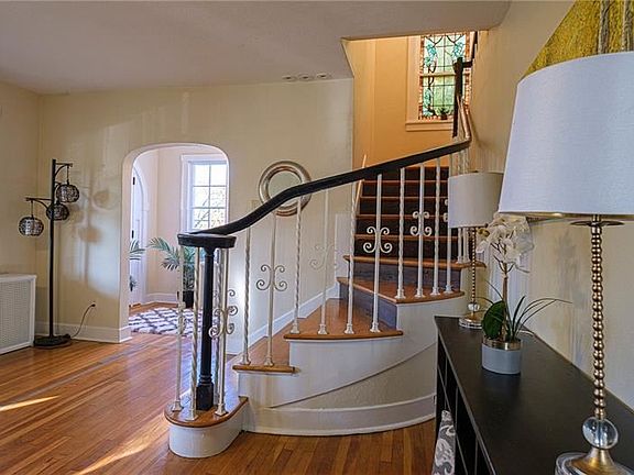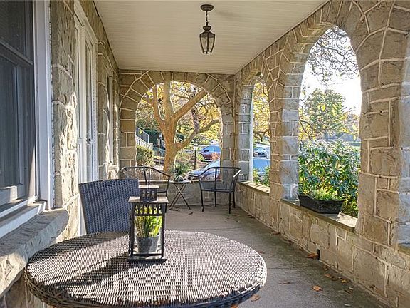 Beautiful stone home on a corner lot in the heart of Squirrel Hill. Through the arched entry, you are welcomed with gleaming hardwood floors and a gorgeous curved staircase with a stained glass window which shines from the landing, giving the living area the warmest light. A stone fireplace centers the room and French doors lead you to a fabulous front porch. The kitchen is equipped with Stainless Steel appliances, white cabinets, and a breakfast bar. Outdoor lounging and entertaining has never been easier with a gorgeous rear patio off the kitchen overlooking the yard. The second floor hosts a stunning owner's suite complete with a renovated bathroom and walk in closet as well as two additional bedrooms and a pretty hallway bathroom. The lower level is a blank slate for your flex space needs including laundry, a powder room, and a one car integral garage. A stone's throw away from Blue Slide Park at Frick and a quick commute to Pittsburgh's hospitals and universities.