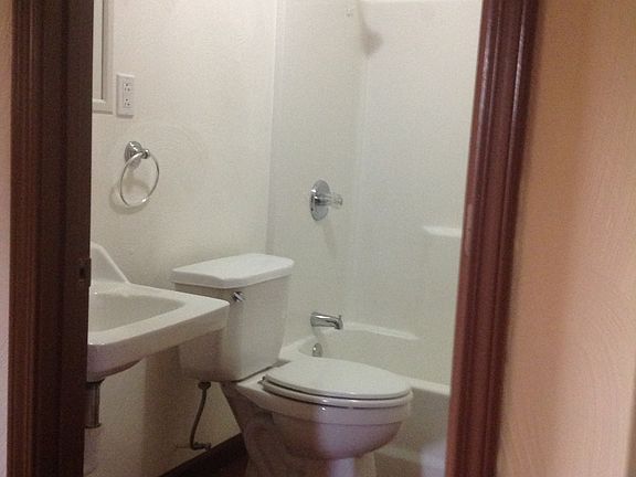 PHONE CALLS ONLY WILL BE ANSWERED CLEAN 2 Bedroom apartment. 1 Bathroom. Good size. Pedestal sink, tub and shower. The floor is new laminate wood. Easy to clean and maintain. Both carpeted bedrooms have their own closets. Both bedrooms have windows. Additional closet in the hallway across from bathroom. Kitchen includes gas stove, refrigerator, and microwave. Dining area has laminate flooring. Carpeted living room. Laundry room with hook ups, but does not include the washer and dryer. There is a deck on the front of the unit. There is not a yard. No pets allowed. Directly on a bus line. Plenty of on street parking available.