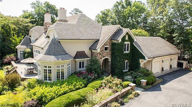 Custom-built home was sited, designed and built w/the utmost attention to detail, energy efficiency, and craftsmanship! 1.6 water view acres with 6871 sq.ft. main residence reminiscent of an English country home. Floral and hardscaped garden areas including sunken garden, koi pond, waterfall, courtyard garden with pergola & pavilion w/fireplace. Garage area for 10+ cars includes 3-car attached garage, 2-bay garage workshop w/storage for 2 cars, and a 5-car garage Carriage House with recording studio, featured on the cover of Garage Style magazine. Gated, secluded compound of privacy with no neighbors. Short Pump area within minutes to shopping and dining. Unbelievable opportunity for the truly discerning buyer whom has a taste for luxury, privacy, and convenience! Square feet includes the 1,848 sq ft carriage house.
