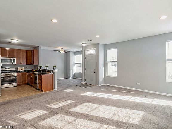 Are you ready to brighten your future in 2022? Check out this totally updated 2 bedroom, 2 bath ranch first-floor end-unit Astor model in the popular Canterbury Place subdivision. You'll love the inviting open floor plan, 9-foot ceilings plus lots of windows to bring in natural light. The updated kitchen has new stainless steel appliances, quartz countertops, and ceramic tile floors with plenty of counter, cabinet, and pantry space. The spacious dining area has a bay window and adjoins the living room with canned lighting and a door to the patio overlooking green space. The primary bedroom features a walk-in closet, ceiling fan and an updated luxury bath with quartz counters, tub & separate shower. The spacious second bedroom, updated hall bath, plus the laundry with new stainless steel washer and dryer complete the modern floor plan. Freshly painted with neutral colors, new carpet, plus all new blinds make this an exceptional move-in ready home! Prime location close to Algonquin Commons, the Randall Road shopping and restaurant corridor, minutes to I-90, golf courses, parks, forest preserves, and more. Don't wait! Make an appointment to see it today and make your future bright!