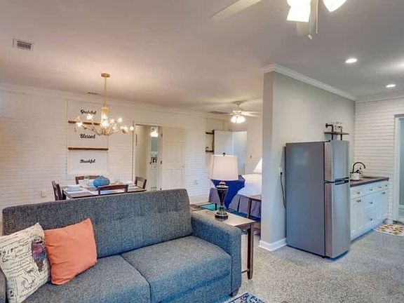 Welcome to Side B of this charming two-unit home, where you can savor a touch of Palm Springs amid Savannah's rich history and southern hospitality. This historic residence features old-world charm, including a live oak draped in Spanish moss, a shared above-ground pool, a gazebo, and beautiful outdoor spaces. Original terrazzo floors add to the allure, all nestled in a historic fishing village just minutes from downtown. The studio apartment is a tastefully converted and fully finished former garage, furnished with a small kitchenette with microwave and kitchen essentials, a queen bed, and two pull-out sofa beds. There is also a large walk-in spa-style shower. Guests have access to the outside spaces that may be shared with guests who are renting out Side A. The entire home is available for rental as well. We are a pet-friendly home. Pets must be crated when they are left unattended in the home. We do not allow pets on furniture or beds, and all waste must be cleaned up from the yard. All pets require a non-refundable pet fee. If there is evidence of pet hair on the furniture, excess hair in the home, stains, or waste found in the yard or home, you will be charged the cost to clean this. Minutes to one of the most beautiful cemeteries in the world, Bonaventure Cemetery is open to visitors year-round. Also close to downtown Savannah, Thunderbolt Historical Society, and less than an hour drive to popular beaches. Guests have access to the B side of the unit. The yard is shared, and there may be guests checked into the A side, so if you're sensitive to guests next door or other sounds, consider this before booking. We have automated check-in and check-out for maximum privacy and flexibility. Weekly maintenance and cleaning are performed on our pool, which will not disrupt your stay, but access to the yard/pool area is needed on service day. A signed rental agreement is required, and guests must be 21 years of age to book.