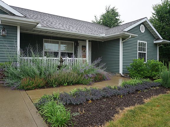This custom built, picturesque home starts with great curb appeal. The covered front porch overlooks gorgeous perennials. Striking features include open concept, gleaming wood laminate flooring, vaulted ceilings, chair railing, display shelving & separate laundry room with sink & cabinets. The eat-in kitchen offers shiny white appliances, loads of cabinets, pantry & lovely tile backsplash. French doors lead you from the dining area to the sun room accented with a large arched window. The split bedroom design gives you more privacy and is hosted with two master bedrooms with full baths & walk-in closets. The stunning backyard hosts a patio with pergola, lilac & magnolia trees, blackberry bushes & butterfly garden. Hot water heater 2016. This is one home that you MUST SEE.