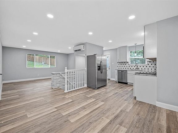 Welcome to this newly remodeled 3 bed/2 bath home on .60 acre. This house has NEW everything . . . roof, siding, windows, electric, plumbing, HVAC & more. As you enter the open floor plan home, you will see a nice sized living room, dining room & kitchen with ss appliances. This divided floor plan home features 1 bedroom w/ large closet on one side of the house & 2 more bedrooms & a full bath on other side. The flooring is beautiful throughout. Wait until you see the large family room in the lower level that walks out to your yard. It will be a great gathering place for family & friends. The ductless heating & cooling system in this house is very efficient & will result in more economic utility costs. There is plenty of parking in the driveway as well as a 1 car detached garage. This house will feel private & secluded yet it is close to highways, shopping & restaurants. Passed occupancy.