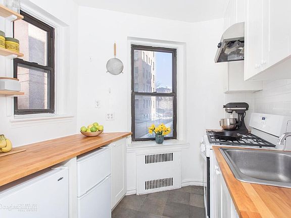 Spacious, well configured, flexible studio unit overlooks charming yard space with plant beds and new concrete walkways. Smartly renovated windowed kitchen (2 windows, 2 exposures) features butcher block countertops, under-counter refrigerators with freezer, a new gleaming white stove, and an 18" dishwasher. Vintage pre-war apartment features many period details, including alcove, baseboard, and chair moldings, refinished parquet and hardwood floors, arched doorways, and high ceilings. Windowed bathroom has been updated, and features a large tub. Roomy closet and dressing room add to this studio's unusual feeling of space. Current owners separate a sleeping area from a large living/dining room. This floorplan allows many options; customize the space according to your needs. Cat friendly building has a live-in super, laundry in basement, storage units, and bike storage. Enjoy the open spaces and other amenities at Brooklyn College, just a short block away. Convenient transportation: #2 and 5 trains at The Flatbush Junction; Q and B at Newkirk Plaza.