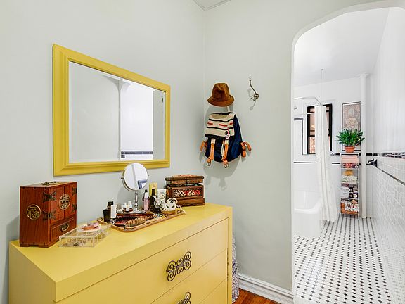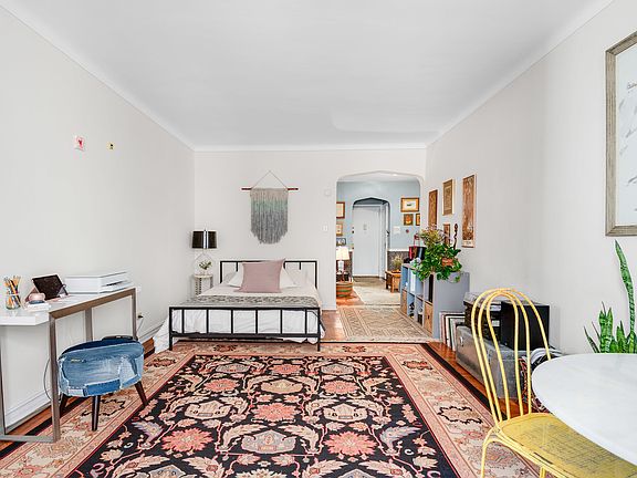This handsome pre-war alcove studio that feels (almost) like a large one-bedroom apartment and features vintage details, such as high ceilings, baseboards, chair-rail moldings, and arched doorways. It has several rooms, such as a cozy living room, a dressing room, and even the kitchen is separated from the bedroom. The comfortable kitchen is equipped with stainless steel appliances, and custom cabinetry features a relaxing view of the lovely gardens downstairs. The spacious bathroom with a window has a large adjacent dressing room. The creative architectural plan capitalizes on the large size of this studio and achieves maximum functionality while maintaining the openness so desirable in any livable space. An integrated home office and dining areas-- give this property plenty of comfortable spots. You can transform the room, thanks to the unique layout, the existence of a foyer, and the unit's spaciousness. The 2601 Glenwood building has its own secure mailroom, art deco elevator, a live-in super, and a landscaped common garden suitable for outdoor entertaining and for growing your own plants. There is also a well-equipped laundry room in the basement. Storage spaces and bicycle rooms are offered to the residents after you join the waitlist for this service. Co-Purchasing and Pied-a-Terres allowed. Low monthly cc's make this an exceptional opportunity. Cats are welcome in the building. The property is well located just steps from Brooklyn College, Flatbush Malls, and Ditmas Park. Transportation is also very convenient, the 2/5 Train is around the corner on Flatbush Avenue, and you will be only a few blocks from the B/Q at Newkirk Plaza subway station. This is your opportunity to have a piece of this great city in an impeccable building. @YouCANownInNYC